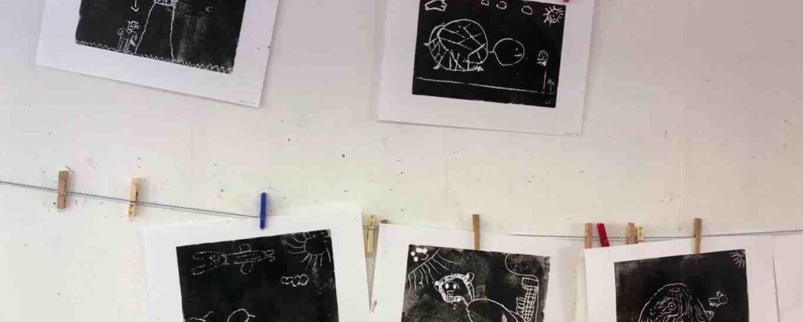 Die Klasse 1d besuchte einen Workshop im Schloss Blutenburg. Dort gestalteten die Schülerinnen und Schüler Äsops Fabeln, wie „Der Löwe und die Maus“ oder „Die Schildkröte und der Hase“ in Drucktechnik.