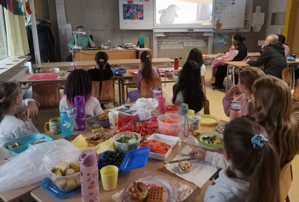 Trotz reichlich Appetit blieb vom Essen so viel übrig, dass wir als krönenden Abschluss spontan die Kinder der 3c zum Partnerlesen einluden.