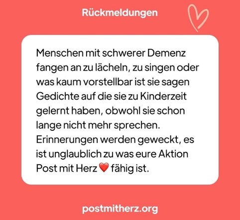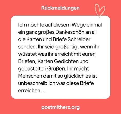 Hier eine Rückmeldung der ehrenamtlichen Organisation von „Post mit Herz“: