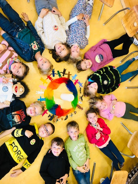 Jeden Freitag in der großen Pause „schwirren sie aus“, unsere Pausenengel. Sie schauen auf Kinder, die alleine im Pausenhof stehen und niemanden zum Reden oder Spielen finden. In ihren Beuteln sind kleine Spiele und Tröster, die sie von zu Hause mitgenommen haben. Die Pausenengel sprechen Kinder an und helfen Kontakte zu knüpfen.